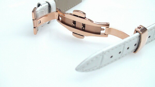 バックル タイプ:プッシュ式Dバックル(プッシュ式ダブルフォールディングDバックル) カラー:ピンクゴールド(ローズピンク) 素材:ステンレス・ポリッシュ仕上げ バネ棒 タイプ:スプリング式(ダブルフランジング) 太さ:1.5mm 素材:ステンレス *ご購入前に腕時計本体とベルト接続部分の幅(ラグ幅)をご確認ください。