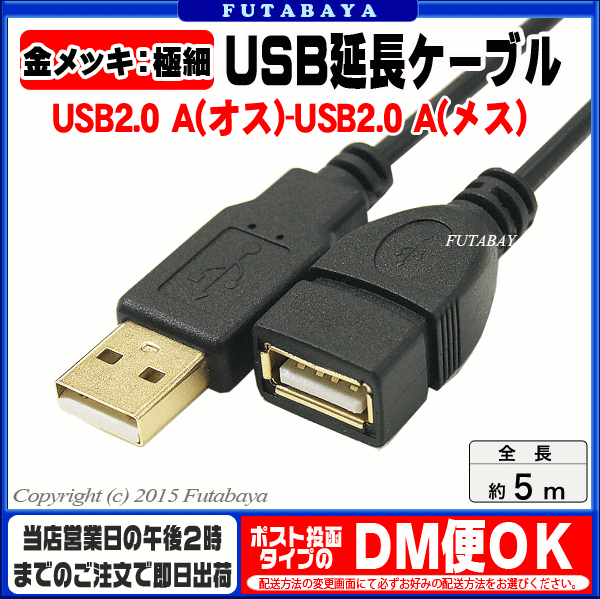 金メッキ端子・アルミシールド・極太データ線で安心のUSB2.0延長ケーブル ●細くても強い! ケーブルの外被を限りなく薄く、しっかりした極太データ線使用、高品質アルミシールドで極太データケーブルをガッチリ保護、被覆が薄くなった分中心部分にワイヤーでケーブル全体を強化いたしております。