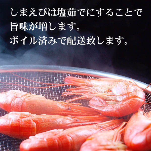 獲れたてしまえびを塩茹でにして、未冷凍のままでお届けします!この時期を逃すと以後、冷凍品となります また冷凍されたシマエビは、お節料理の一品に北海道の特色を表すためによく使われます。