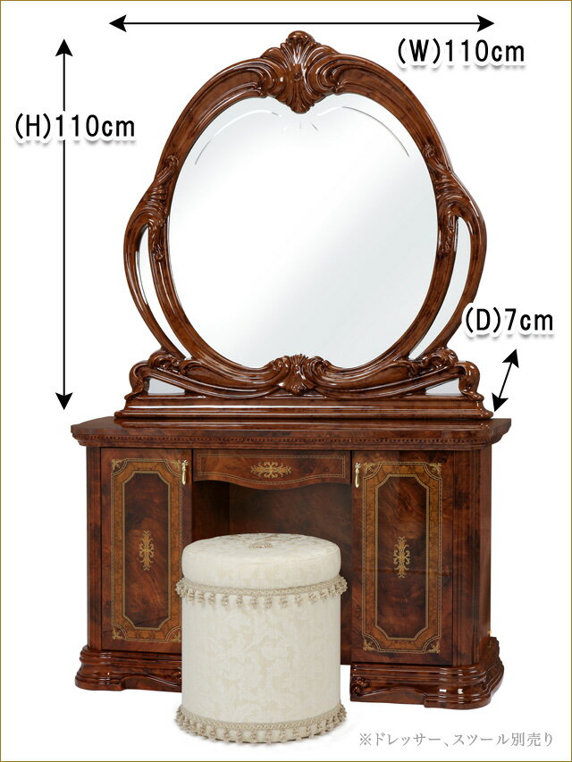 【代引き不可】ミラー サルタレッリ社製 アマルフィ ブラウン ドレッサーミラー ウォールミラー 鏡台 姫系インテリア プリンセス家具渡辺美奈代セレクト