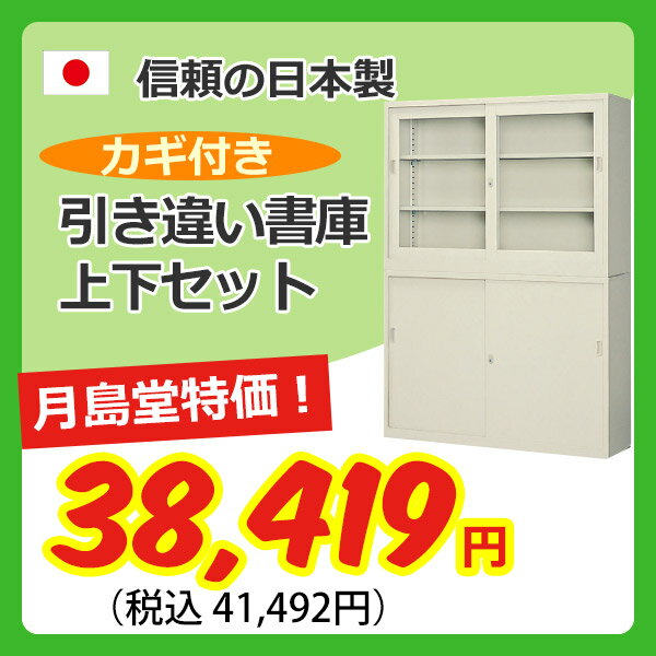 ★ポイント最大13倍★【通販限定価格】【上下セット】-引き違い書庫 (鍵付) G-43SG 【コード 1110】 +G-43SS 【コード 1111】 ガラス戸+スチール戸 新品 完成品 日本製 幅1210mm奥行400mm高さ1760mm-【送料別途 ご注文時に必ず配送表をご確認ください】 t-skf0093